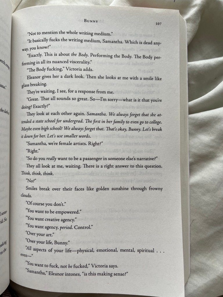 Mona Awad’s Ivy League horror novel, Bunny (2019).